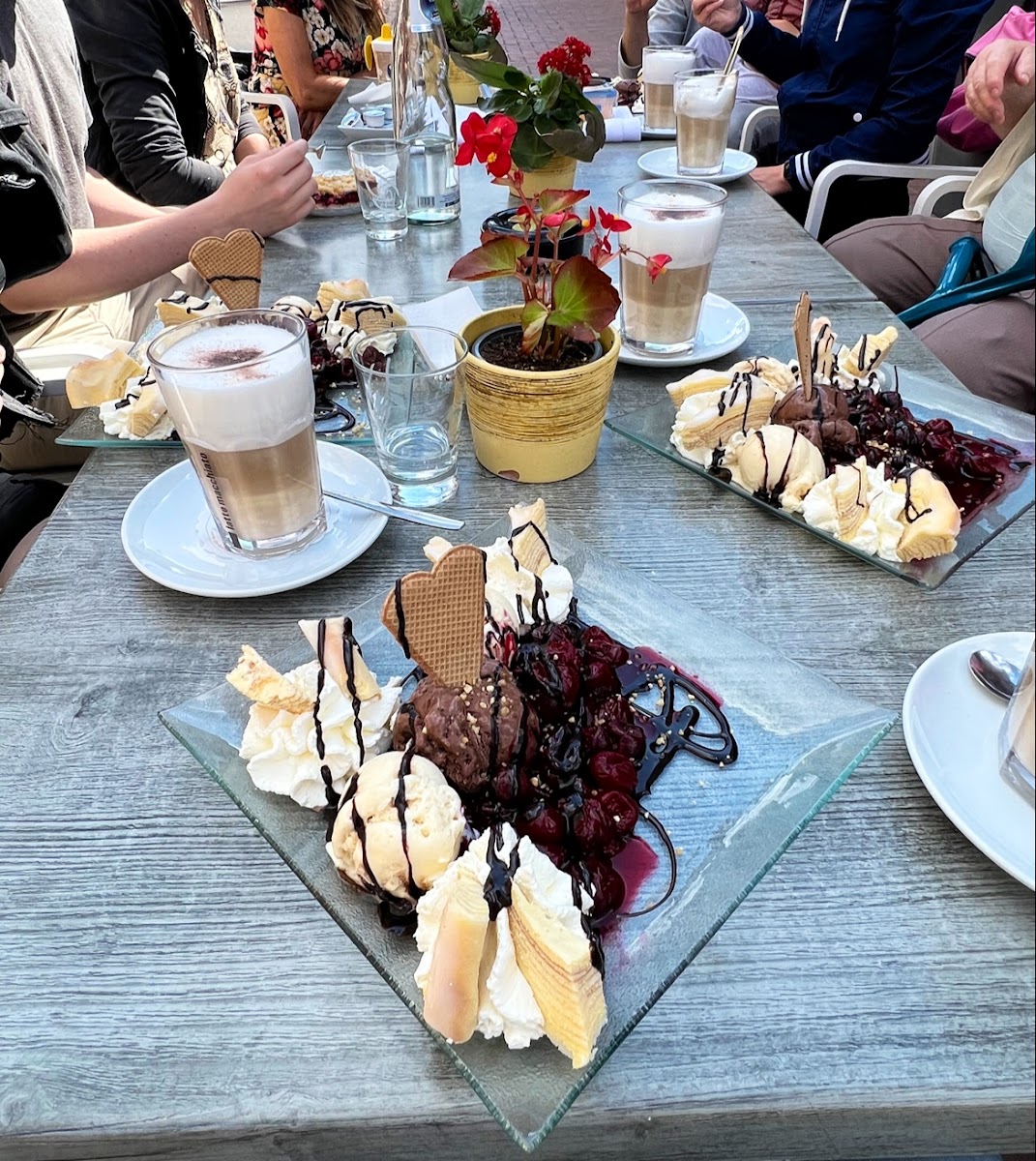 As you step inside, you are welcomed by a beautifully decorated space that exudes comfort and coziness. The tasteful interior design creates an inviting ambiance, ideal for indulging in the café's offerings. In the summer months, take advantage of the lovely terrace out back, where you can enjoy your treats surrounded by greenery and fresh air.